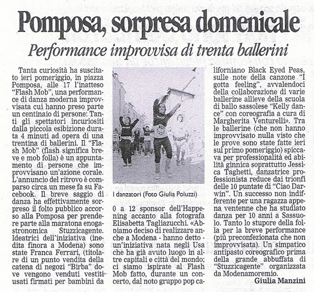 E' stato un evento STRAORDINARIO! Hanno partecipato un centinaio di persone ad un balletto improvvisato in centro a Modena. La coreografia è stata preparata dalle allieve nostre amiche (circa una quindicina) di Kelly Dance, una scuola di ballo di Sassuolo. Ma tutti gli altri si sono aggregati in modo spontaneo e molti anche all'ultimo momento!
