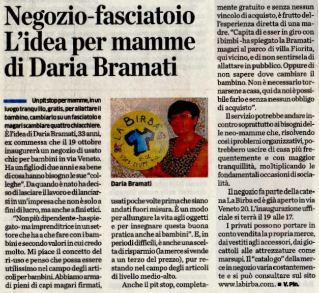 Cittadino di Monza ha dedicato un bell'articolo a Daria, la titolare del negozio La Birba di Brugherio